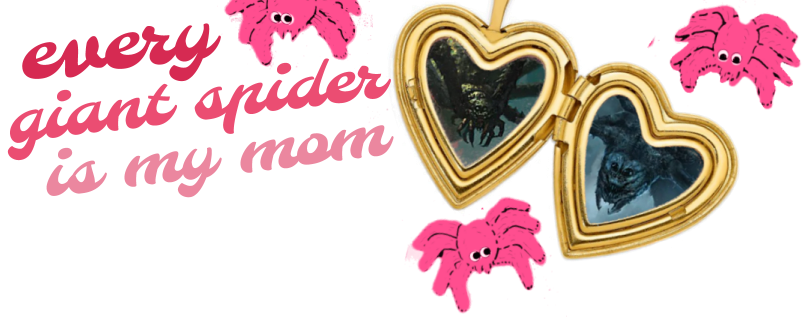 I will be getting into some very personal stuff here, weirdly enough!! Not too deeply or in too much detail but if your day is going to be very negatively affected by talk of childhood abuse and/or bad relationships with your human mother, I totally get that, hope you have a great rest of your day/night, and I'll catch ya later. Stay safe. 💖 So, you know how people will say "Hatsune Miku wrote Harry Potter" because they still like it but don't want to support its shitty, hateful creator? Yeah...this is sort of along those lines. why giant spiders? I have the name of a spider and love spiders in general. I've always been a big fan of the giant spiders of fiction and folklore. Basically: I just think they're neat. i say "they're my mom" because: - I no longer have a mother figure - I miss having familial connections sometimes - I enjoy self-mythologizing - I think it's funny tbh do you actually think a spider is your mom? Not like that. I'm a human being with human parents. It's not a kin thing or a furry thing -- no hate to those in those communities, it's just not how I feel/experience things. It's basically a long-running personal joke. why does the page look like this? I grew up in the 90s in the southeast USA and shabby chic was A Thing in interior design at the time. When I tried to think of any cozy childhood memories, they looked and felt sort of like this. This is where I'm going to start talking about heavier stuff, be warned before you scroll!! I'm about to get bizarrely vulnerable for a page about big spiders and if you think that's gonna make you uncomfortable I get that~ my actual mother When I say I no longer have a mother figure, I arguably never did in the first place. I have no biological family members I'm still in contact with. I didn't grow up knowing the Chinese side of my family, and I was raised in a family where no one else looked like me, by a narcissistic single mother who never did the work to process and heal from her own trauma and rage and tried to funnel it all into me instead. I got to be the golden child ("Pookie") outside the home and the punching bag ("stupid piece of shit," etc.) behind closed doors. It was...a bizarre and not-great experience overall. 0/10 do not recommend, got my tubes tied at 25 to make completely sure it doesn't happen again. I went no-contact with my mother nearly a decade ago now. She'd previously done the same with her own mother for similar reasons, but still can't respect my decision and continues to try to contact me even now. For a while, holidays were a little rough. Some days were sadder than others. On her birthday, refusing to send her a text, I felt like I was skulking around. Playing hooky from my role as her child. On Mother's Day, I felt alternatingly pathetic, the Little Matchbook Girl looking into the windows of others' happiness and shivering alone in the cold, and filled with punk rock fuck-you zeal to do all the things she would hate to see me do in a single day. Or more accurately -- things she would hate to have other people see her kid do. That was always the priority. I've spent Christmases alone. It's kind of fun. Where I live becomes a ghost town as people flit away to their families. Taking a walk in the cold with almost no one else around is so peaceful. There's a hibachi buffet near where I used to live. This has been years ago now, but I remember getting absolutely blitzed and taking a book there on Christmas Day. It was a great time. When I went to pay, the woman at the register told me a family had already covered my tab, with an overly sympathetic look. It made me think they'd seen me with my red eyes alone in a booth on Christmas and thought I'd been crying, and might have told her that. Mildly embarassing in the moment but it saved me $20 at a time I knew I was stupid to spend it, so I'll take it. I kind of feel like I scammed them a little, but I hope it made them feel good. Thank you, whoever you were!! I appreciate y'all. But I digress. There were less-fun holiday times as well, as you might expect. Red eyes I earned the "right" way in the opinion of buffet-going good Samaritans. I eventually realized I wasn't missing my mother, I was missing the concept of having one at all. So I needed a substitute. As I was coming from a background of being raised to feel inherently Bad and Wrong and Other and Unworthy, I needed a "mother" who was beautiful and terrible. This time, I wanted a mother who terrified other people, who could use her wrath to protect me, not try to destroy me. ![]() ungoliant & shelob These two are my favorite because they're iconic, and I am a biiiiig nerd. However, I'm not the genre of nerd that has the Silmarillion memorized, I am a filthy casual LOTR-enjoyer. 😔 Give me time, though. It's something that's lurked around the edges of my interests for a long while. I'm not going to throw a bunch of fantasy terms at you because I don't really know what all this shit means either. (LOTR superfans please don't come for me it's not shit I'm just lost) Ungoliant was a demonic spirit/force of darkness who assumed the physical form of a gigantic spider to assist Melkor/Morgoth (ancient big bad/sort of Satan allegory) in destroying [two gigantic trees that produced all the natural light]. She was capable of creating webs of Unlight, a void of darkness that allowed her and her allies to move unseen. She was enormous and so was her appetite. Shelob was the last-surviving daughter of Ungoliant, produced after Ungoliant mated with the other giant spiders of Middle Earth and devoured them. The spiders of Mirkwood are her offspring. Ungoliant and Shelob are my go-to "moms"/"mom and grandma" because they're some of the best-known, named giant spiders, and they're intelligent. They covet, they plot and plan. While all giant spiders are cool, there's just something next-level about the ones who are trying to eat you because you pissed them off or because they're planning something rather than